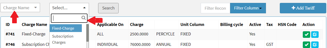 charge After login with a role having tariff update permission, You can update tariff for any charge by using the following steps: