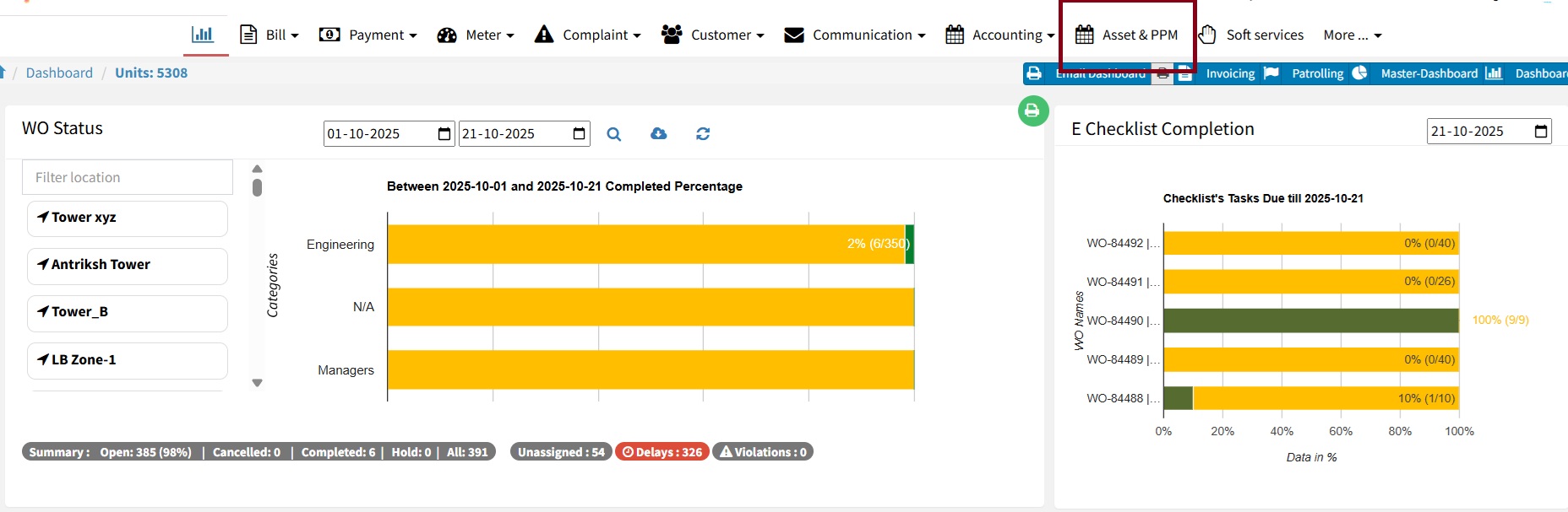 • PPM (Planned Preventive Maintenance) schedules and tasks