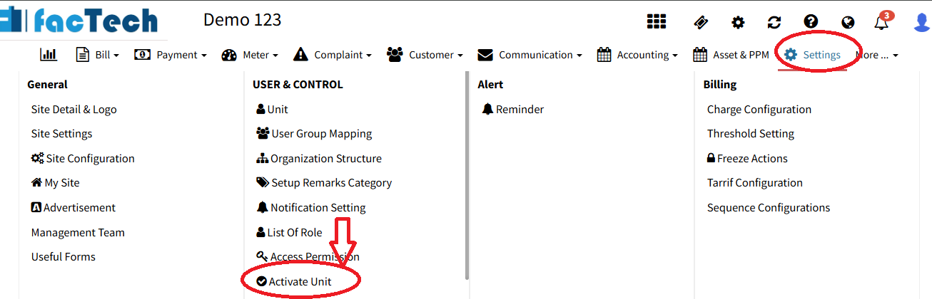 Click on Activate Unit under the User Control System section.