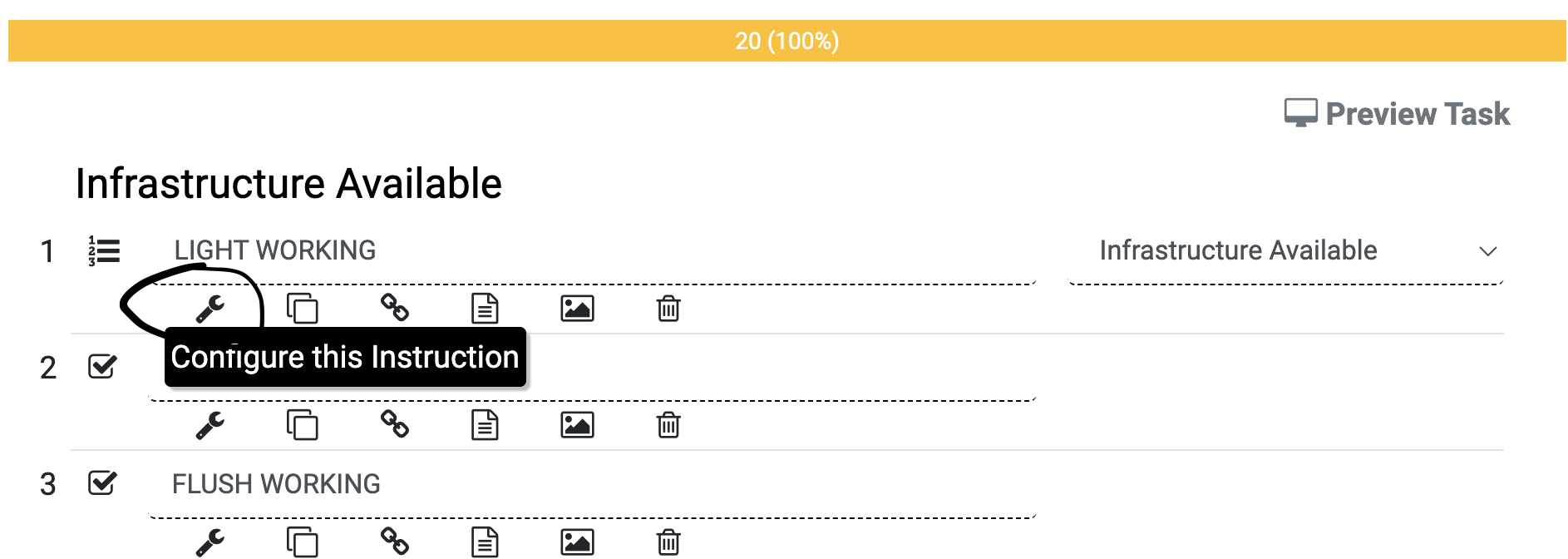 Step 1: Open checklist in edit mode, by going to PM schedule and click on Configure Icon of instruction