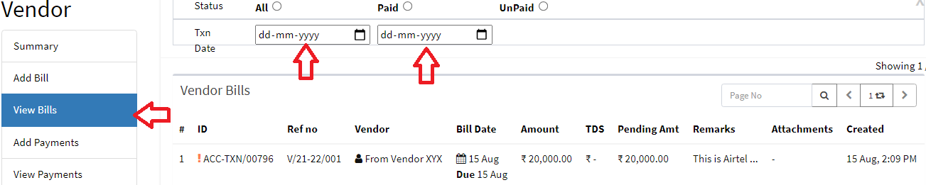 • Payment Date: Bill date can be today or past date, bill date can’t be future date