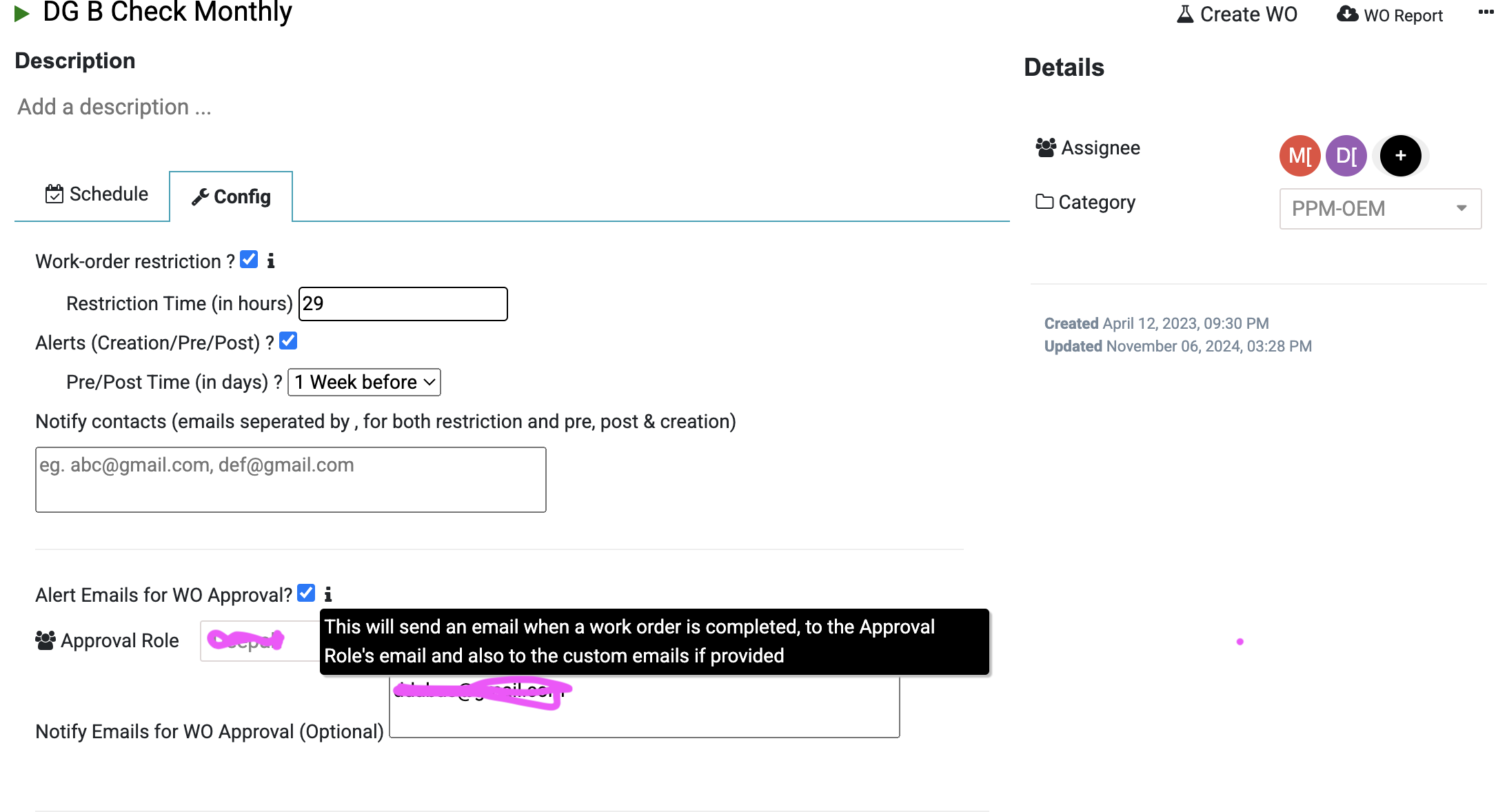 How to approve completed Maintenance Work Order over email