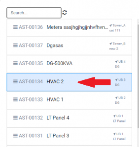 1.2 Search the asset from the list of asset you want to assign the checklist.