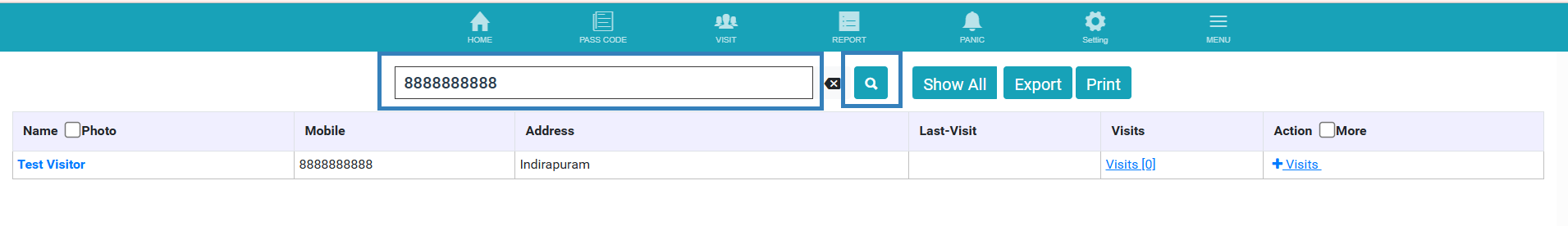 Step 2: On the ‘All Visitors’ page, search for a specific visitor by their name or mobile number.
