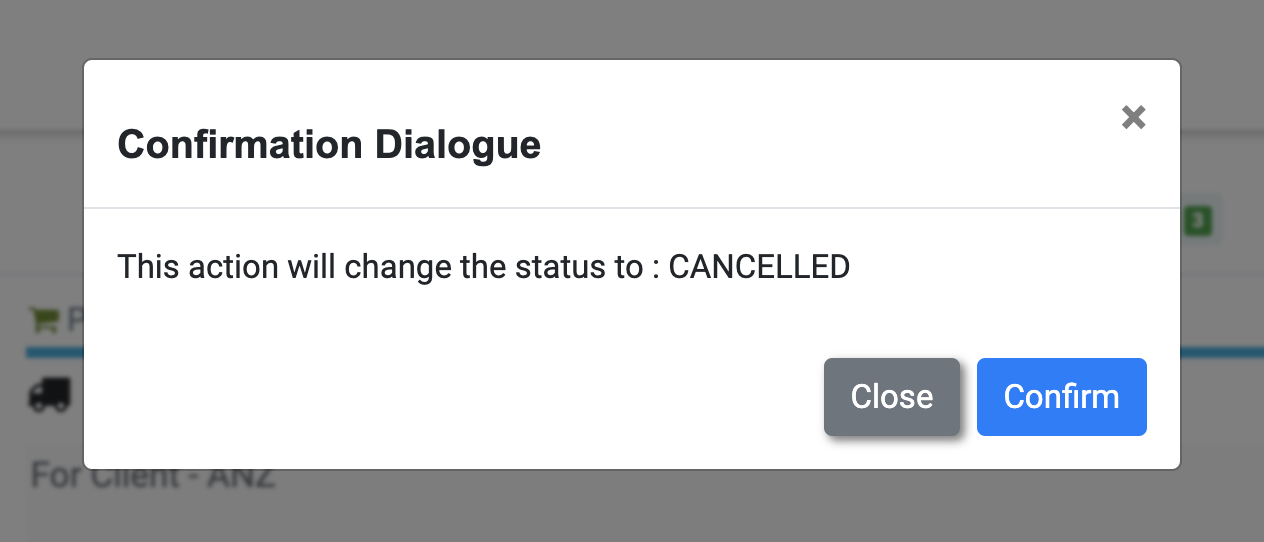 3. On Confirmation the PO will be marked as CANCELLED and automatically moved under CANCELLED