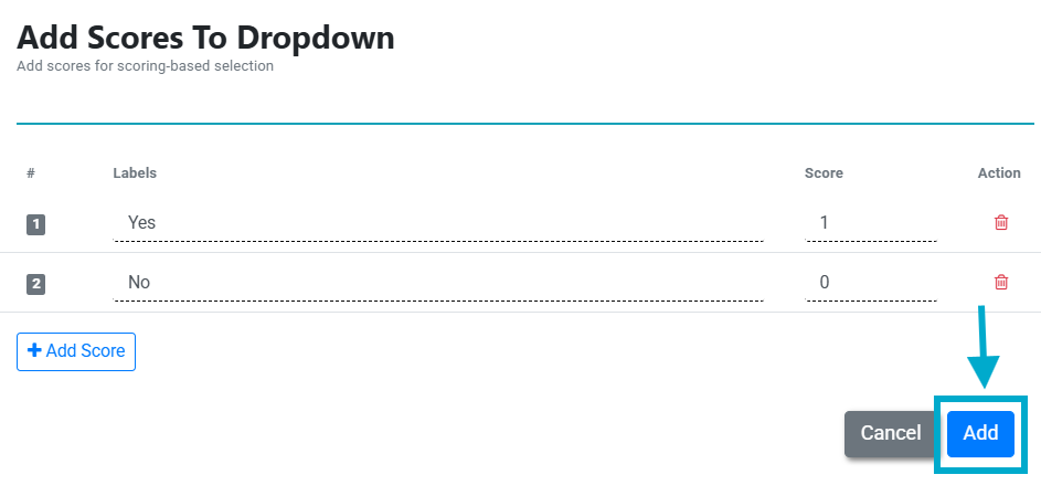 8. Add scoring labels (e.g., “Yes” = 1, “No” = 0).