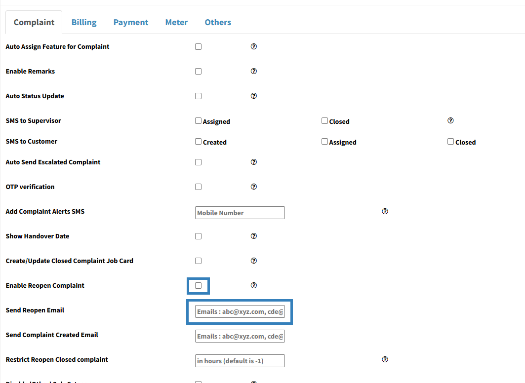 Here we need to enable the “Enable Reopen Complaint” option and add the email address in the “Send Reopen Email” box for alerts.