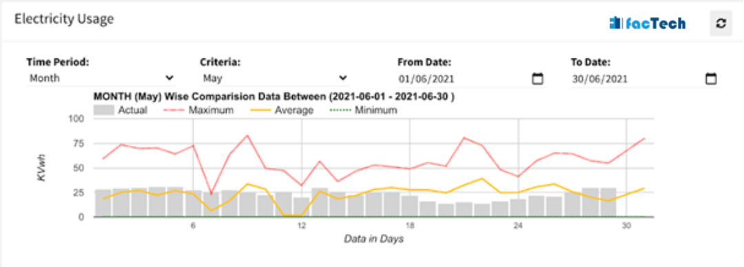 Below is snapshot of Electricity usage chart. After that steps are given how to populate this analytics along with log sheets.