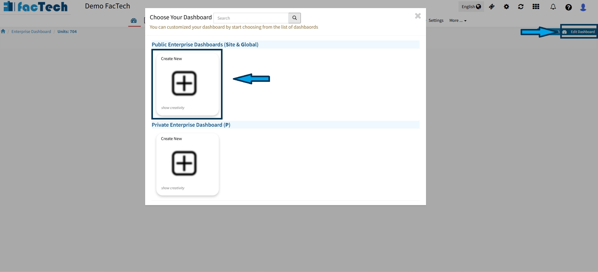 Next, click on “Edit Dashboard” and then select “Create New”.