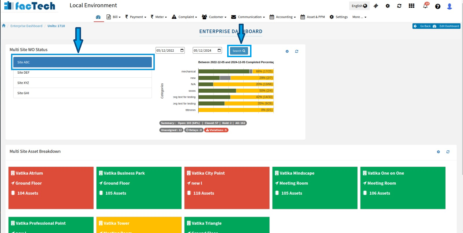 Previously, we did not have a Multi-Site Dashboard (Enterprise Dashboard) feature in the FacTech system. Now, we can configure multi-site dashboard functionality on a single site, allowing us to track data from multiple sites through a single dashboard.