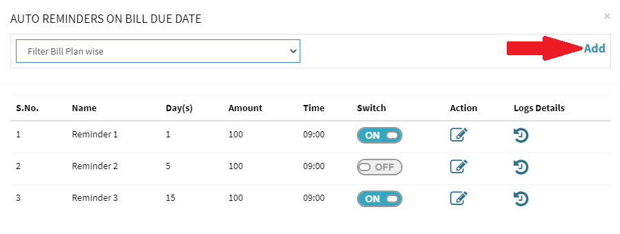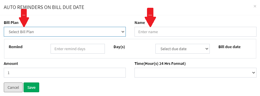 - Now Select the Bill Plan and provide the Name of the Reminder.