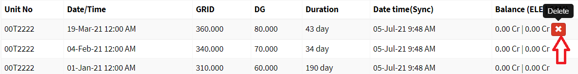After logged in as admin having meter reading (access rights), you can delete meter reading as per your needs using the following steps