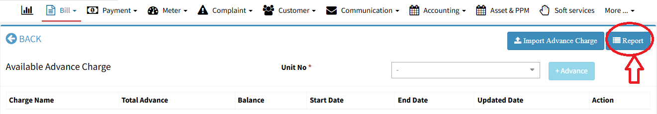 Click on Report – In the Advance Charge section, click the Report button.