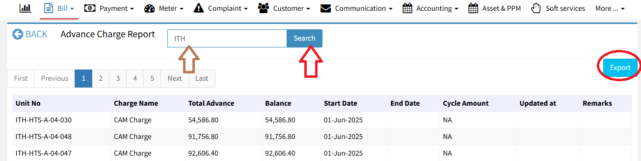 Navigate to Advance Charge Module – Go to the Billing module and click on Advance Charge.