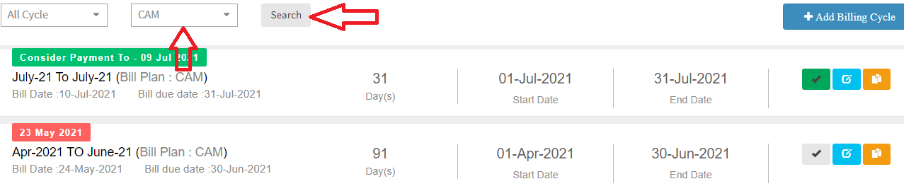 Step 2: Select CAM/Maintenance bill plan and click on “Search”