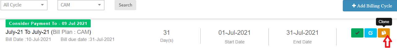 Following are the steps to clone the existing billing cycle :