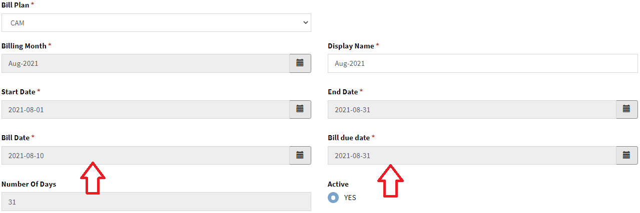 Step 4: update bill date, due date and payment consider date as per needs