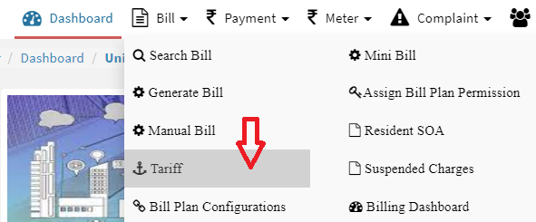 Step 1: Go to  Main Menu (Bill), Select “Tariff” option from drop down menu