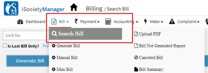 - In main menu go Bill and select search bill option