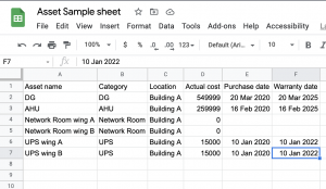 Get Ready with the excel for your assert (one in a row). example as below…