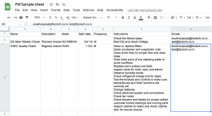 - Emails: Separated via comma ‘,’ By default, the emails will be sent before 2 days of work creation. You can change it after import by selecting the schedule inside pm.