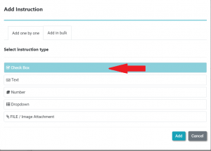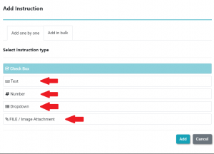 • Once you click on + Instruction button then a pop window will appear. Select what kind of checklist information fields you want to create.