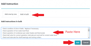 • Once you have selected the list of activity then copy it. After that in Kaizen, click on Add in Bulk Tab, then paste the activity inside the Add instruction in bulk text box then click on Add button to add the checklist.