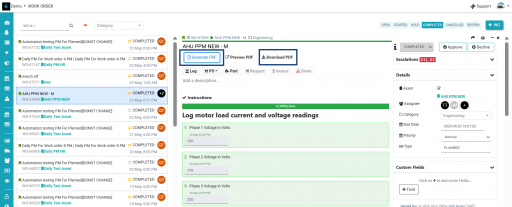 Step 2: Choose the work order or checklist you want to print. Then, locate the ‘Generate PDF’ button.
