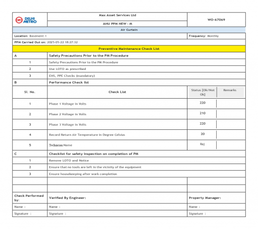 After completing a work order or checklist, we can now print it in a specific format. To do this, we need to follow these steps: