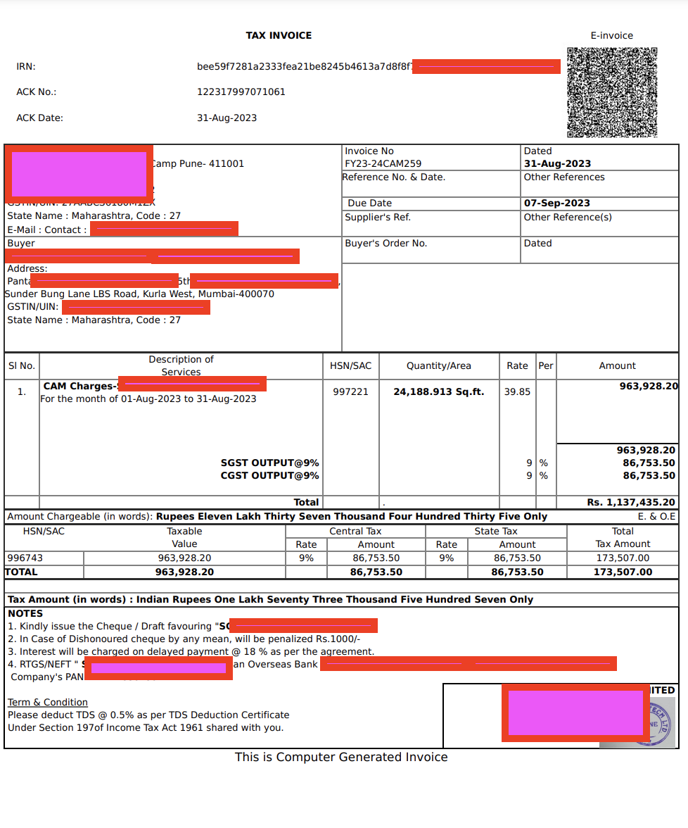 - Multi-Section – Separate sections for Charges, GST & Amount payable. Download PDF CAM-bill-format-separate-sections